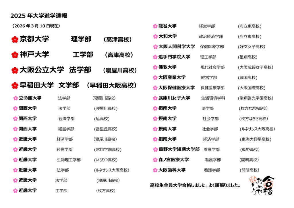 大学合格、全員合格おめでとうございます🌸